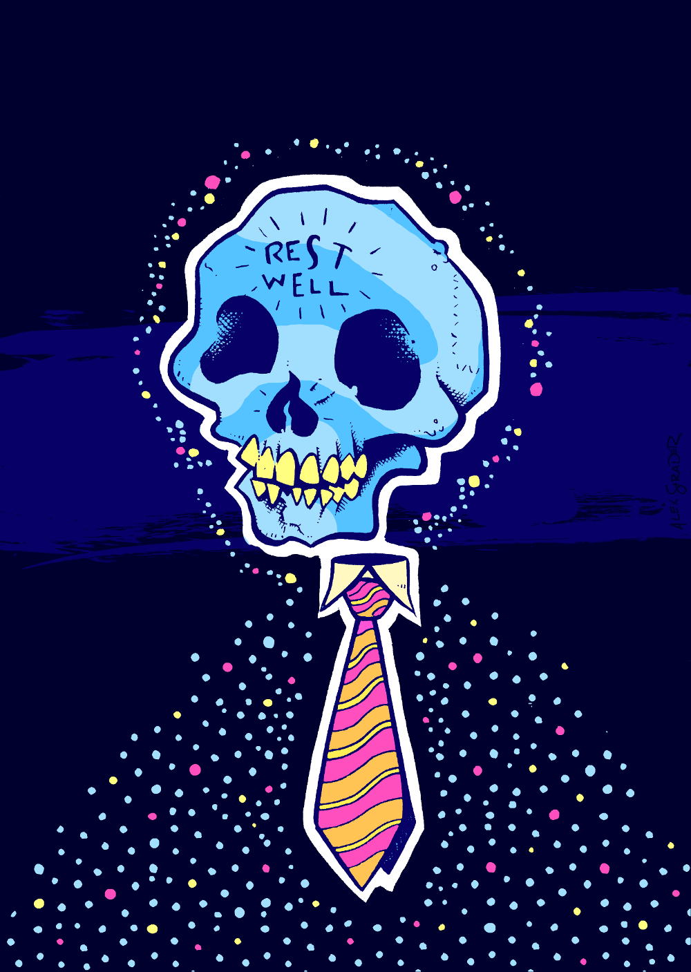 Alex Strader (Born August 4, 1987) creates both mixed media and digital work, often with original characters. His work is loosely based on real life experiences with a mix of dreams, music, fiction, and pop culture. He also explores themes of suffering and the expanding neurosis of 21st century society, albeit in a humorous and often ambiguous way. He graduated from Kent State University with a Bachelor of Fine Arts in 2012 and a Master of Arts in Teaching in 2017.